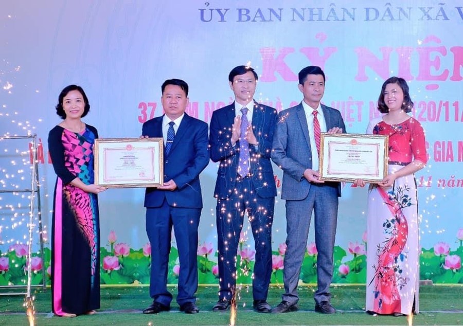 Hình ảnh Đ/c Nguyễn Đức Cảnh trao bằng công nhận trường đạt KĐCL và đạt Chuẩn QG