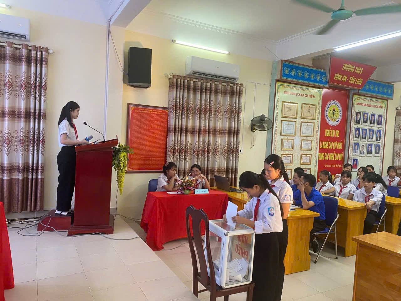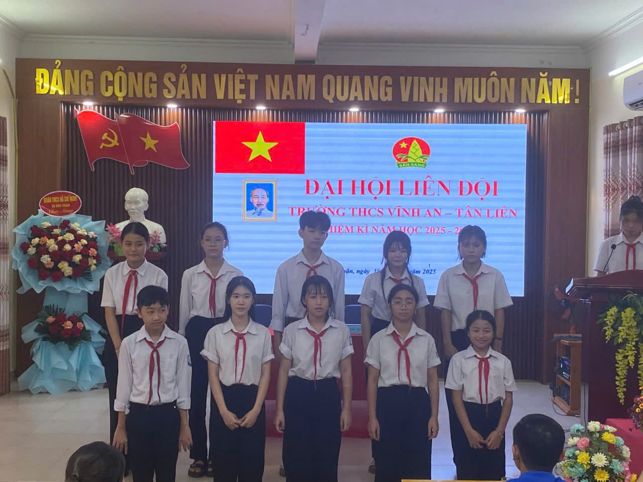 Hòa trong không khí thi đua sôi nổi của năm học mới, Liên đội trường THCS Vĩnh An – Tân Liên long trọng tổ chức Đại hội Liên đội nhiệm kỳ 2025 – 2026. Đây là đợt sinh hoạt chính trị quan trọng của thiếu nhi toàn trường, nhằm tổng kết, đánh giá công tác Đội và phong trào thiếu nhi trong nhiệm kỳ qua, đồng thời đề ra phương hướng, nhiệm vụ cho nhiệm kỳ mới.