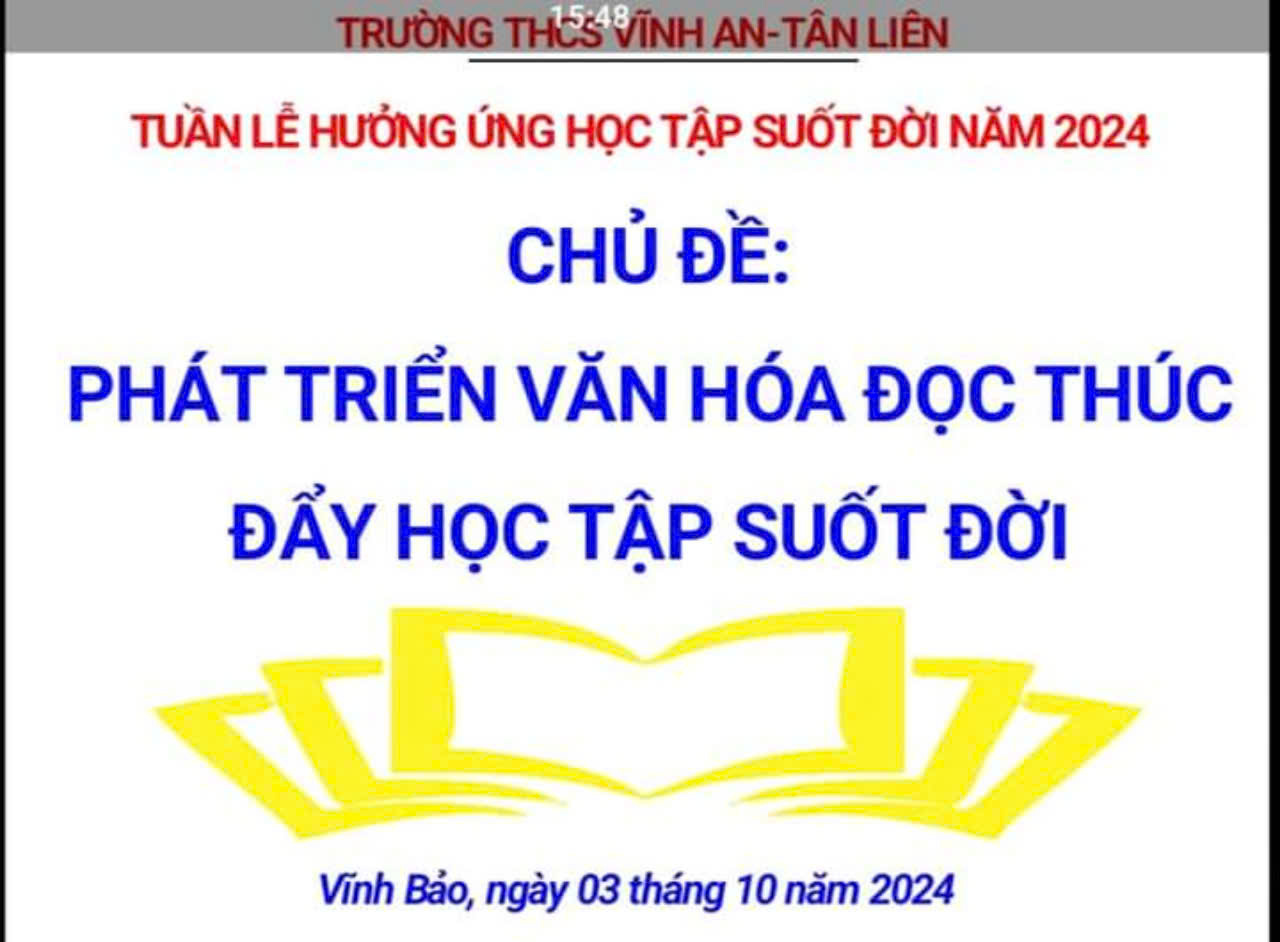 Trong lễ khai mạc ngày hôm nay, cho phép tôi chính thức phát động, khai mạc Tuần lễ hưởng ứng học tập suốt đời với chủ đề: “Chuyển đổi số thúc đẩy Học tập suốt đời” nhằm nâng cao dân trí, nâng cao chất lượng nguồn nhân lực và chất lượng cuộc sống của bản thân, gia đình và xã hội… chung tay xây dựng xã hội học tập để cao chất lượng giáo dục góp phần xây dựng đất nước Việt Nam nói chung, quê hương Vĩnh Bảo nói riêng ngày càng giàu đẹp.